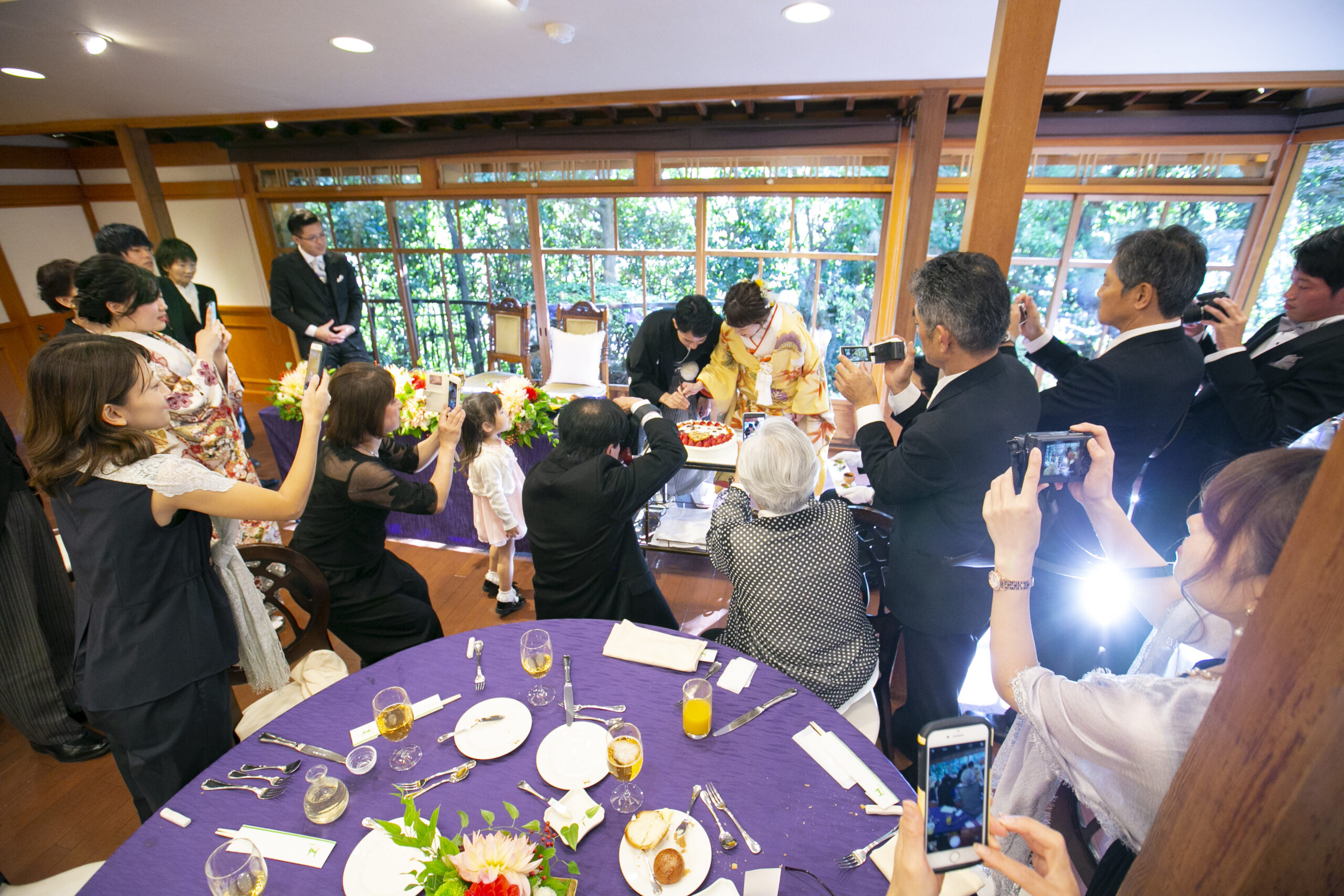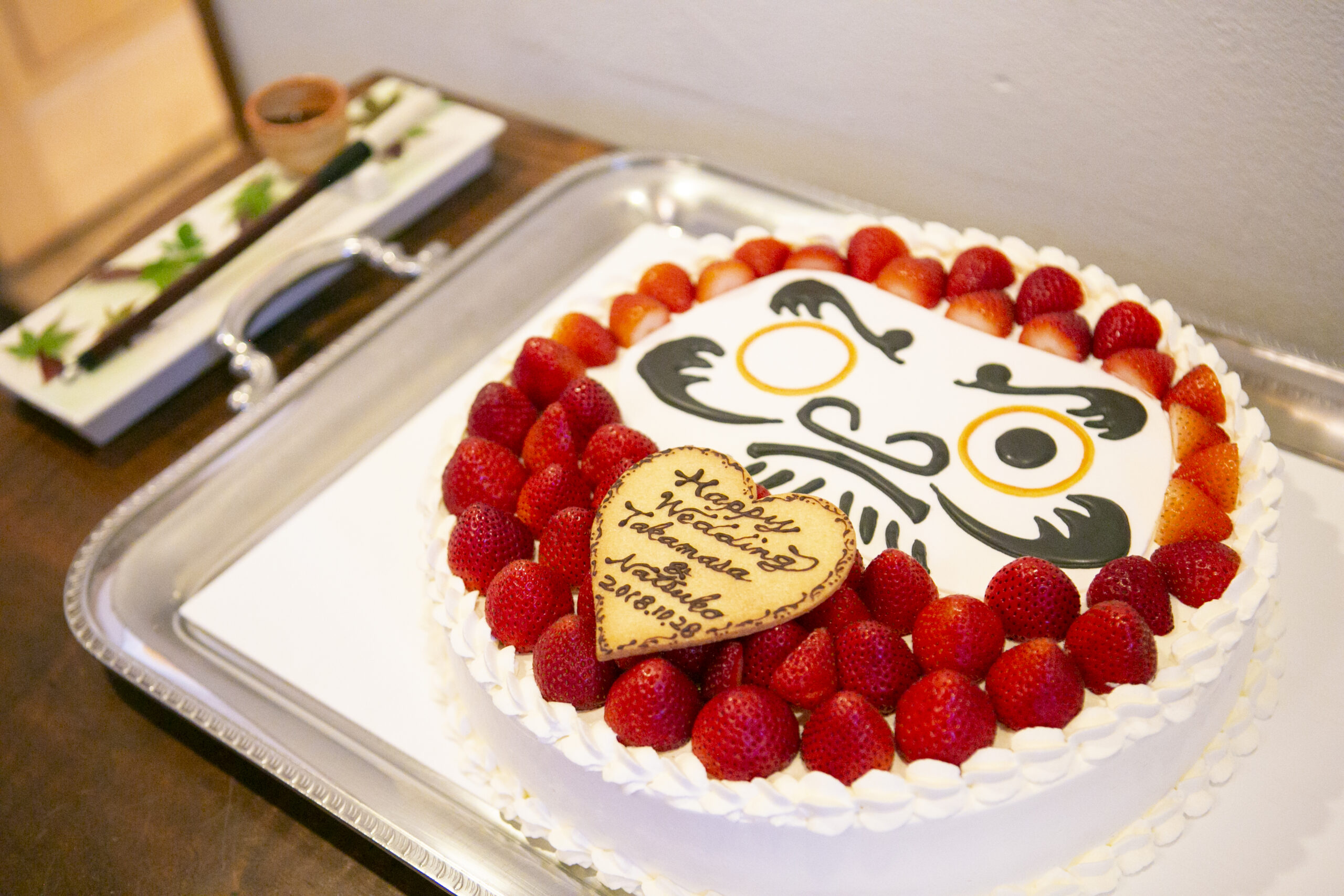 お餅つきや、ケーキ入刀の代わりにダルマの目入れ…当館ならではの和の演出で会場内は盛り上がりました。