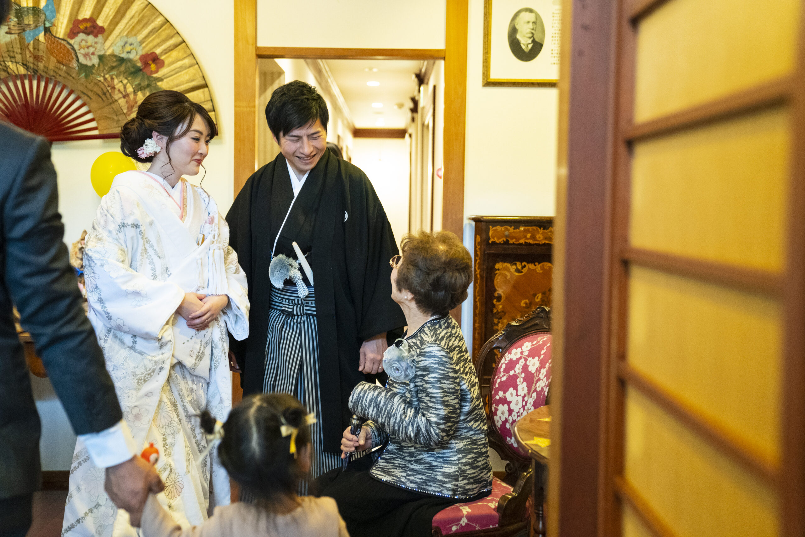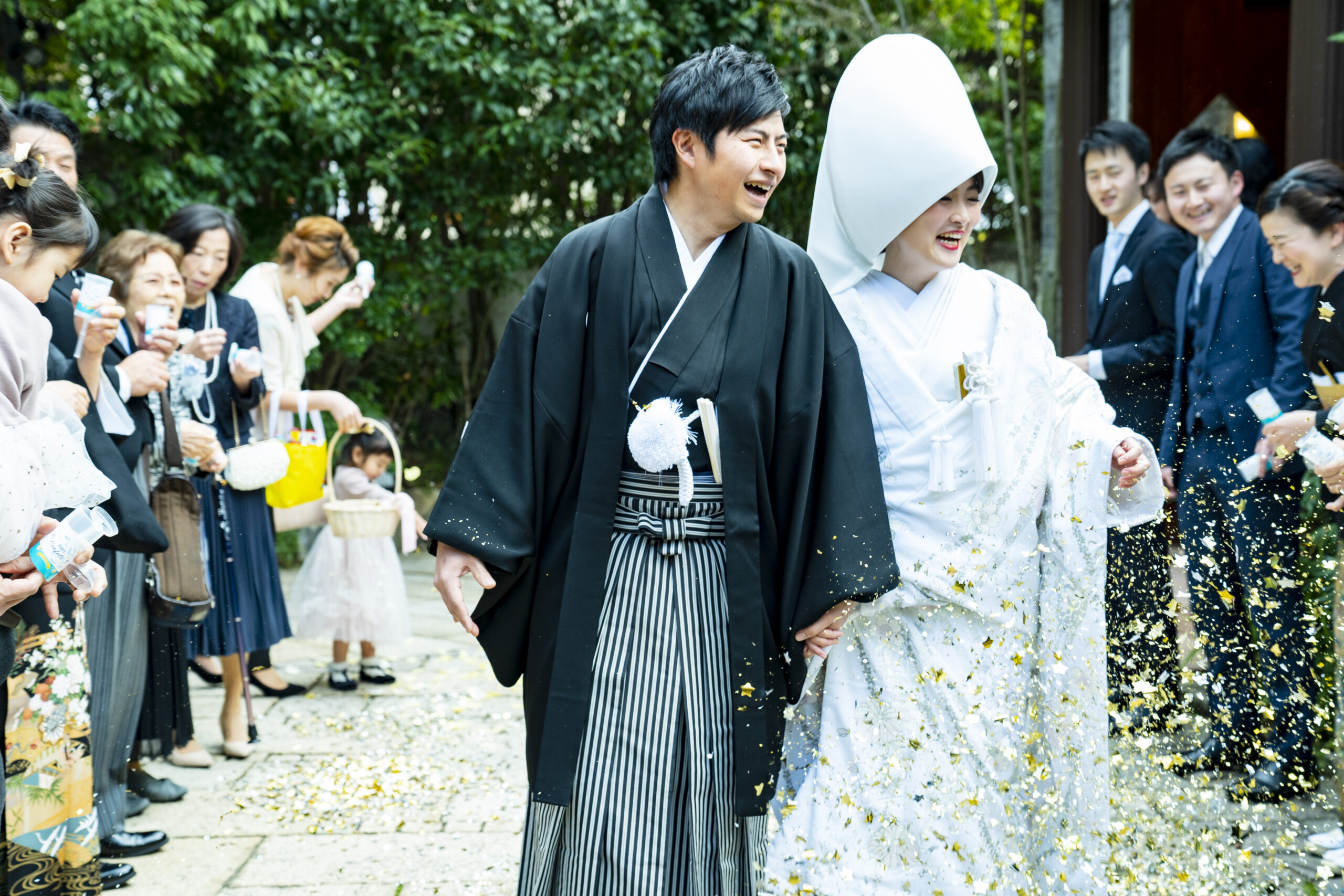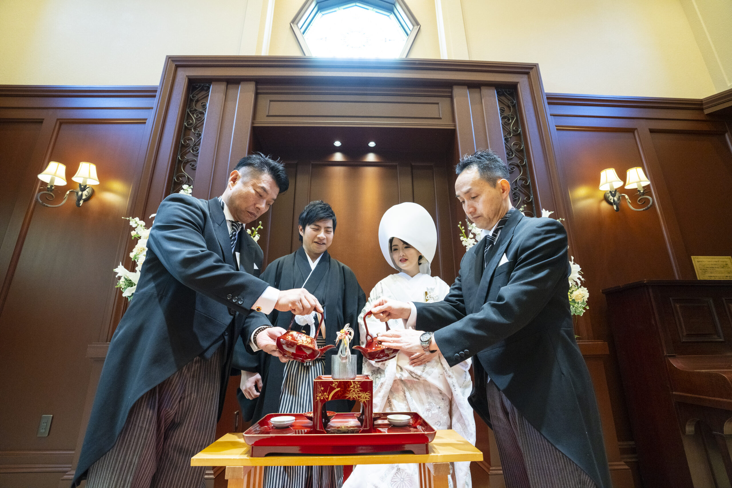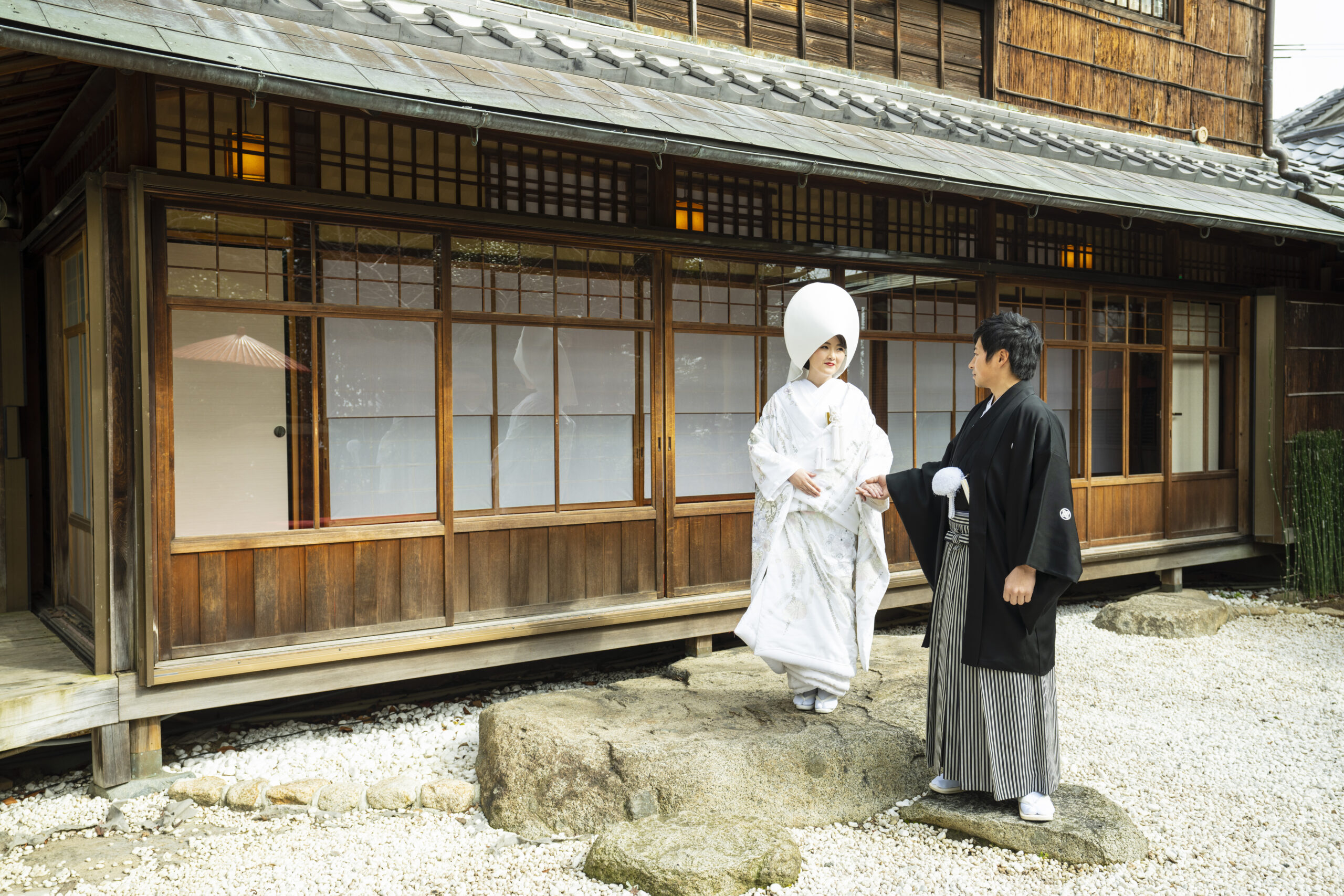 紋付袴・白無垢と綿帽子をお召になったお2人は、