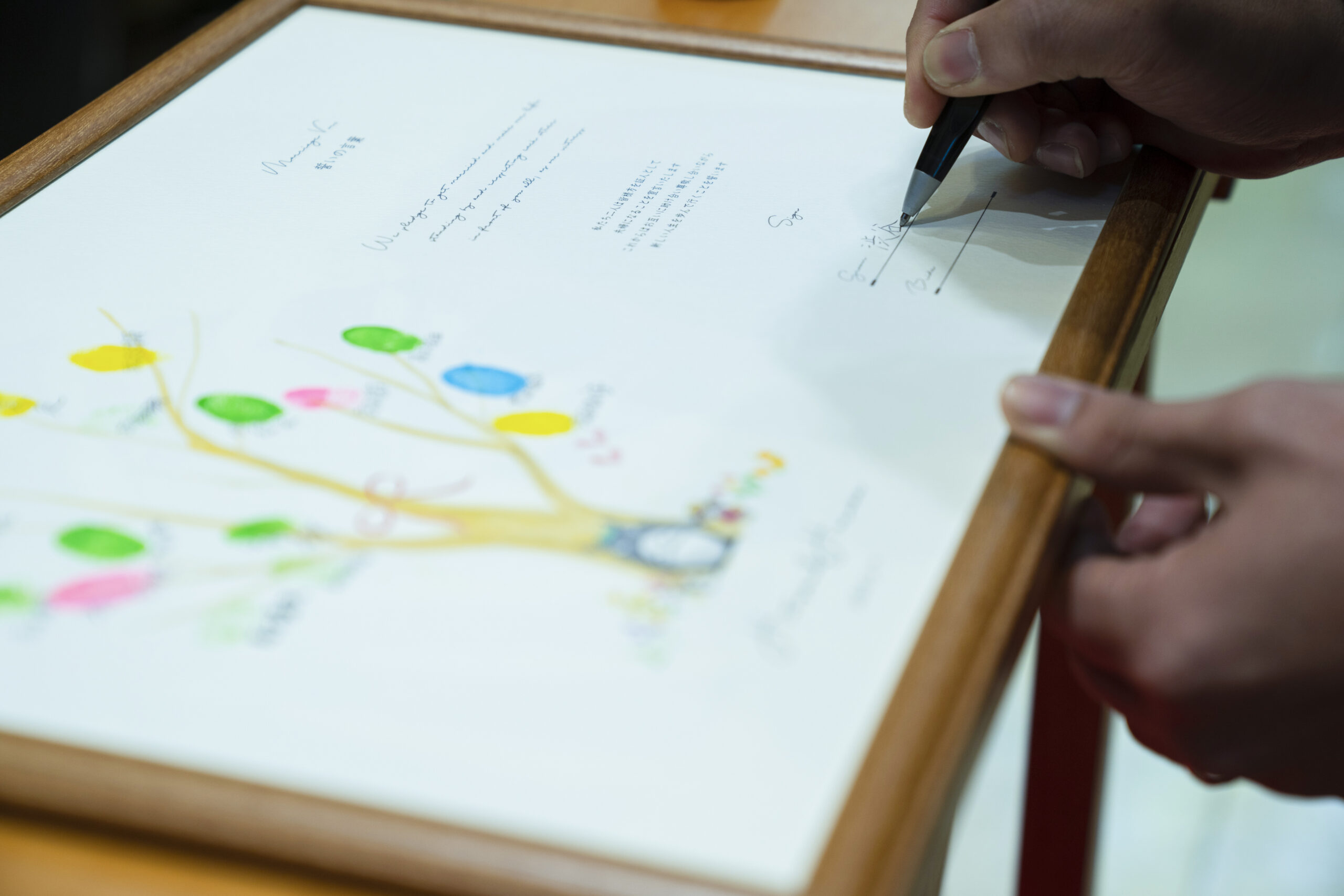 人前式ならでは…皆様にご協力頂き完成した証明書へ名前を。