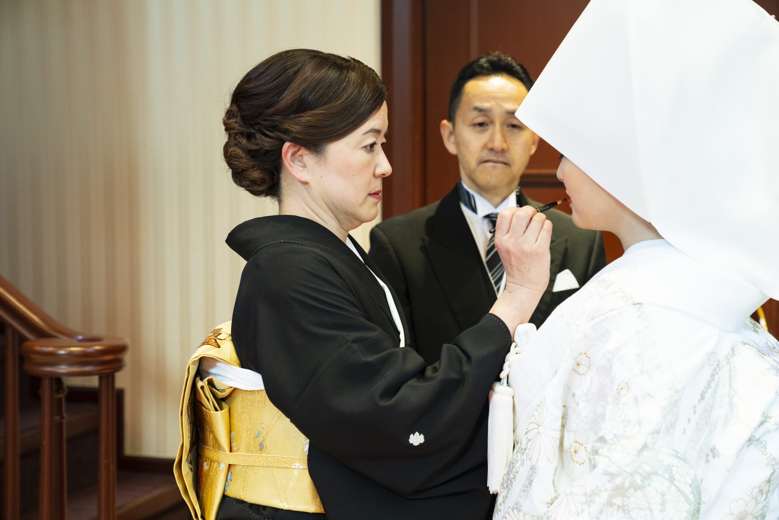 その背中に手を添え、見守るご新郎様。