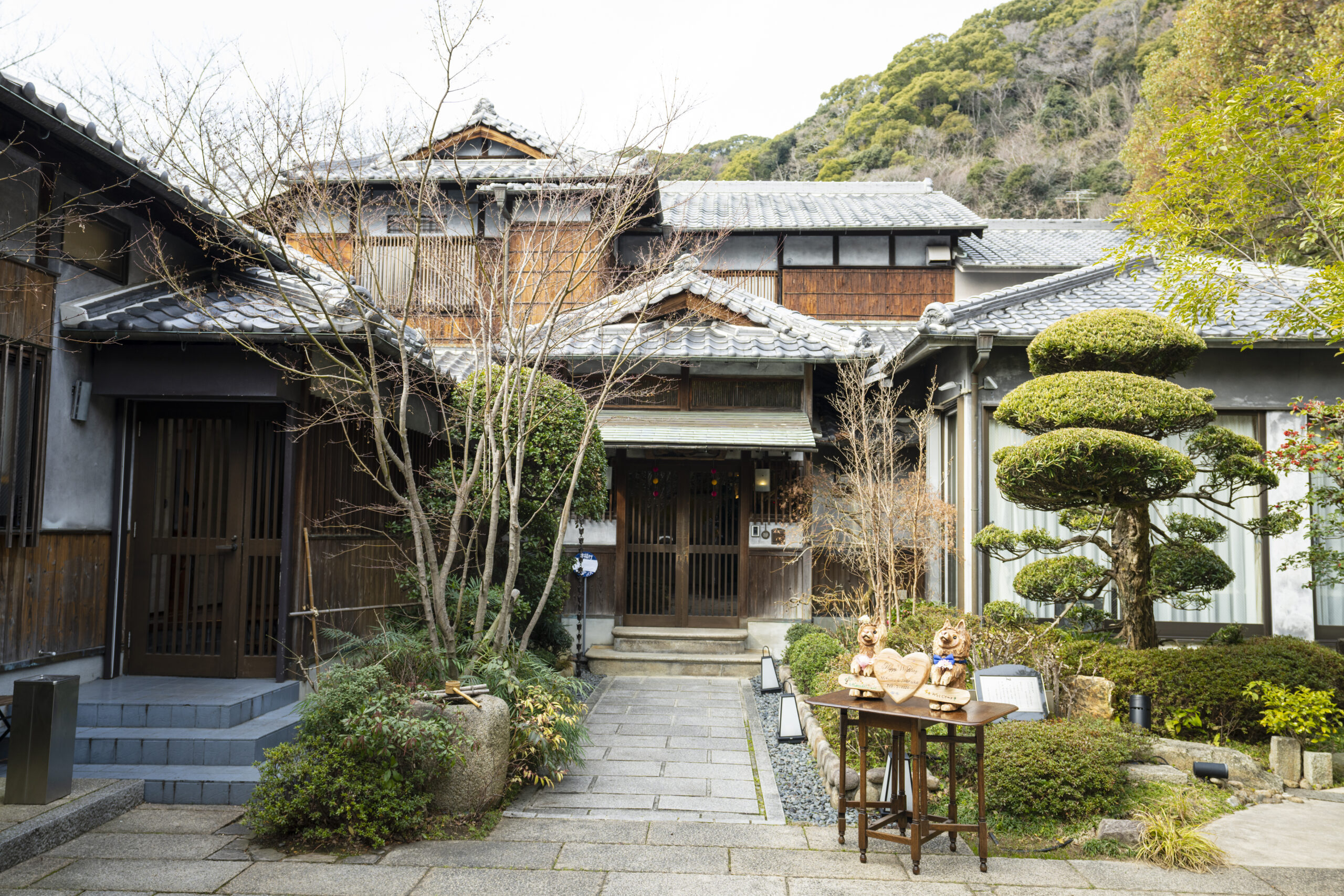 ブラインドが上がり、登場したのは和庭園。