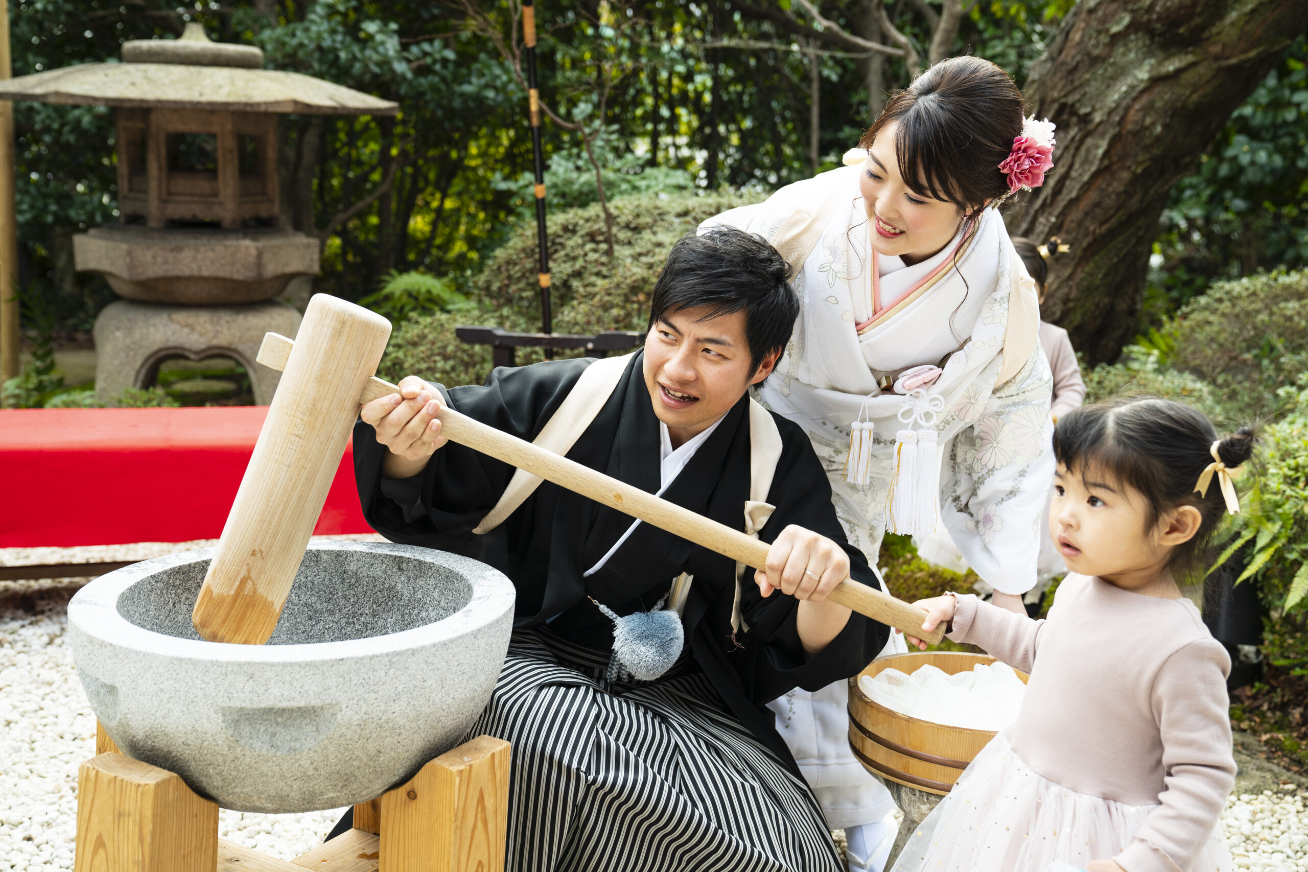 その中央にはお餅つきのご準備とお2人が!