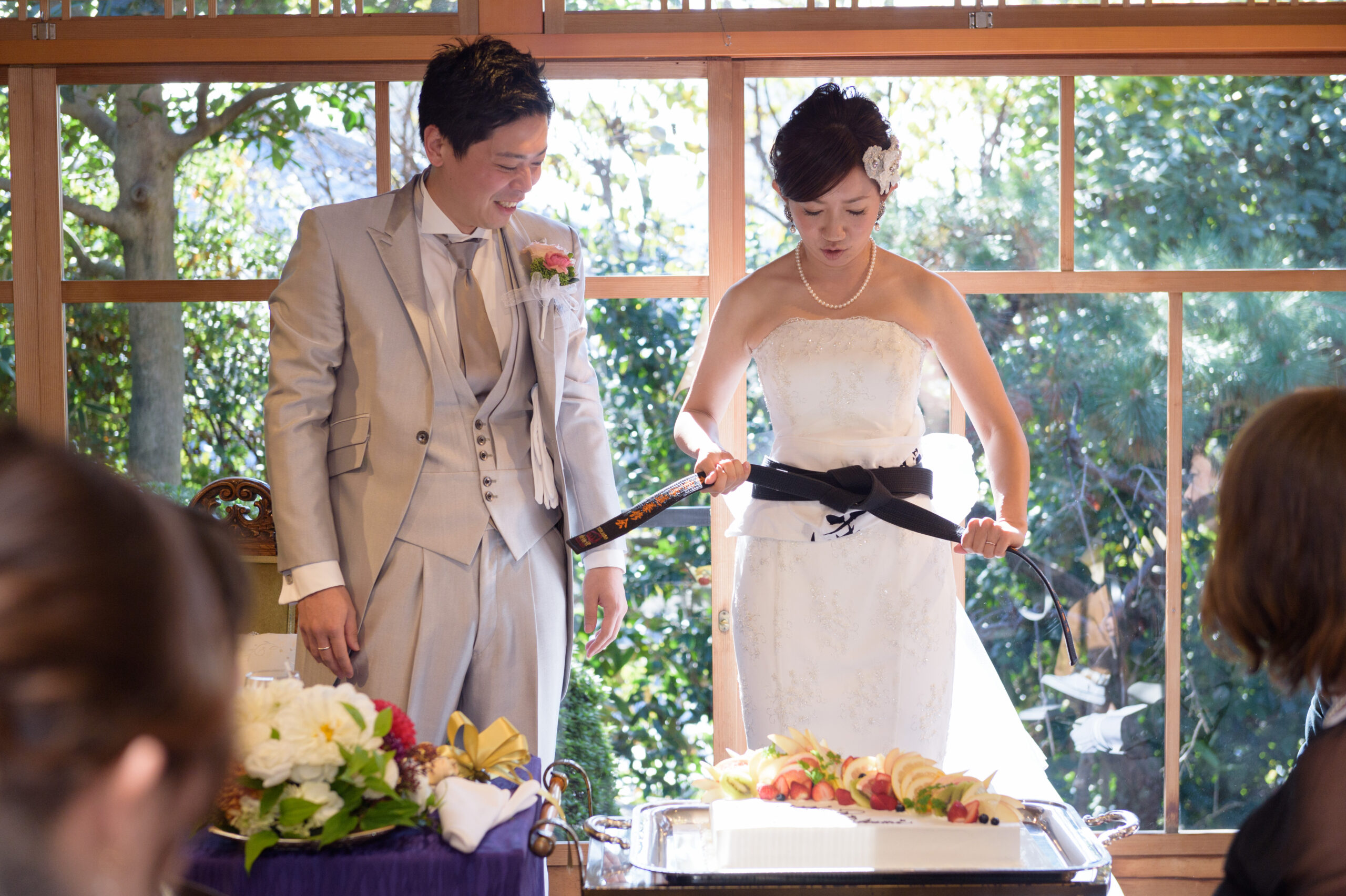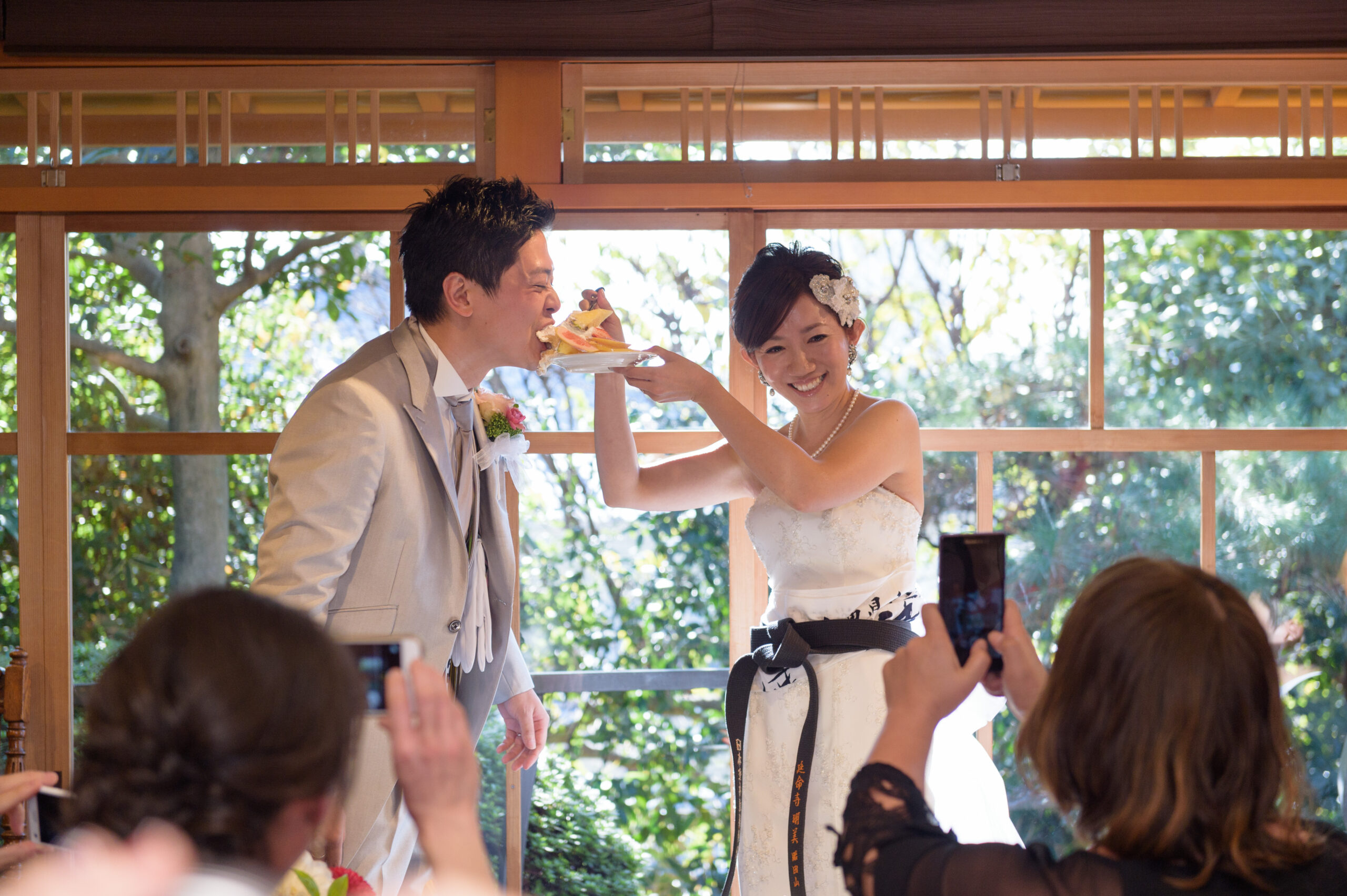 ケーキ入刀の時は黒帯を締めて気合のファーストバイト!!