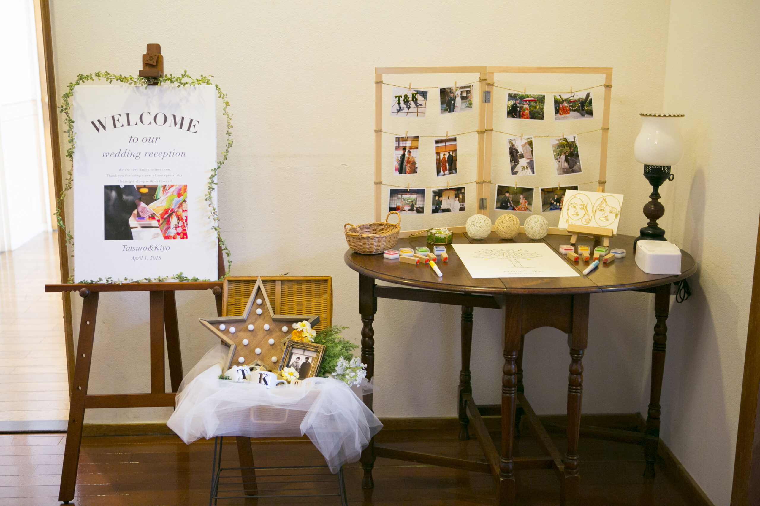 桜の綺麗な時期にゲストに喜んでもらえる結婚式がしたい!そんな想いでゆっくりと時間をかけてご準備を進めてこられたお二人。沢山のウエルカムアイテムやテーブルクロス、装花…一つ一つがお二人のこだわりです。