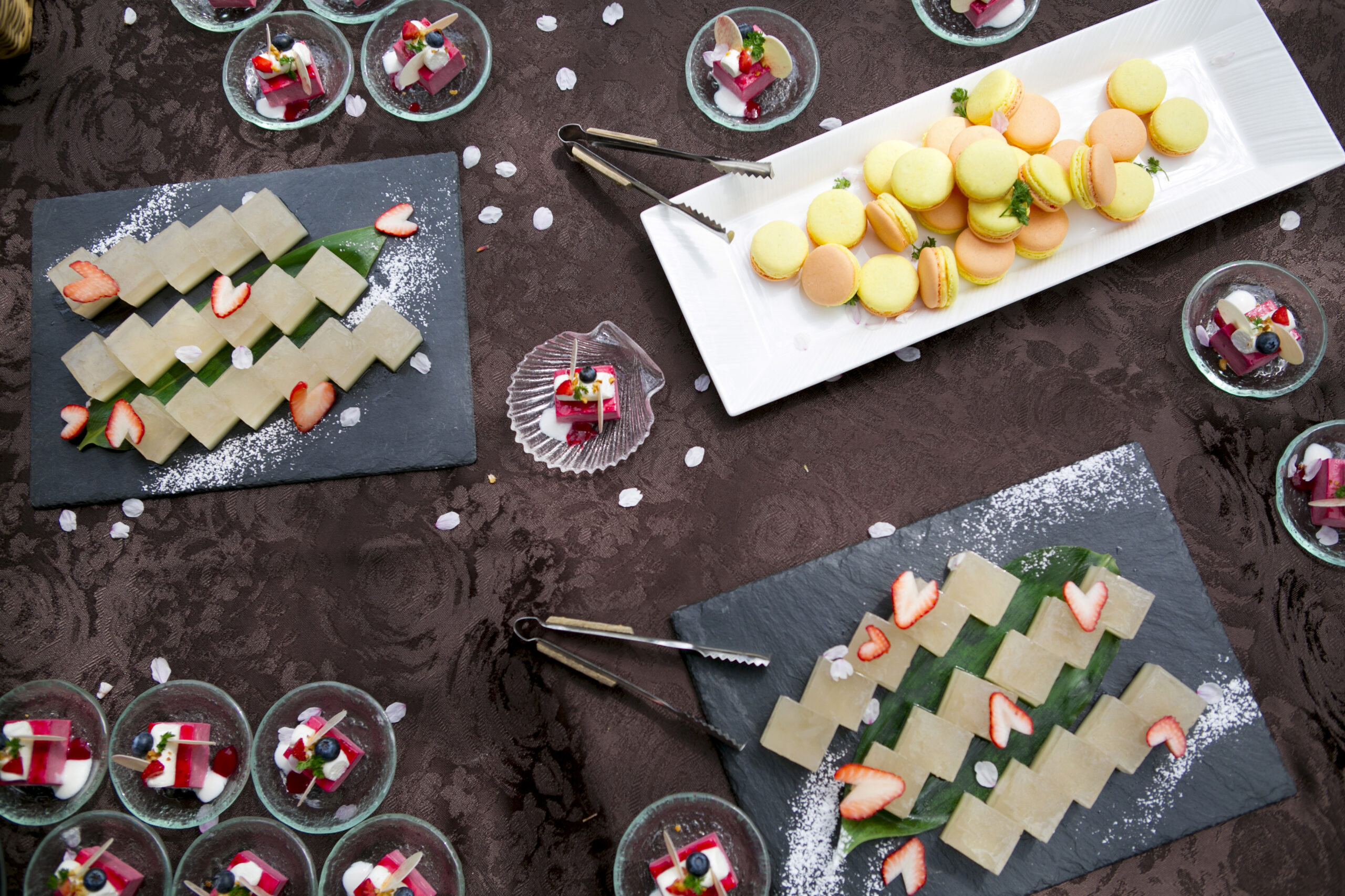 当日は桜の花びらが舞う中でのデザートビュッフェ!