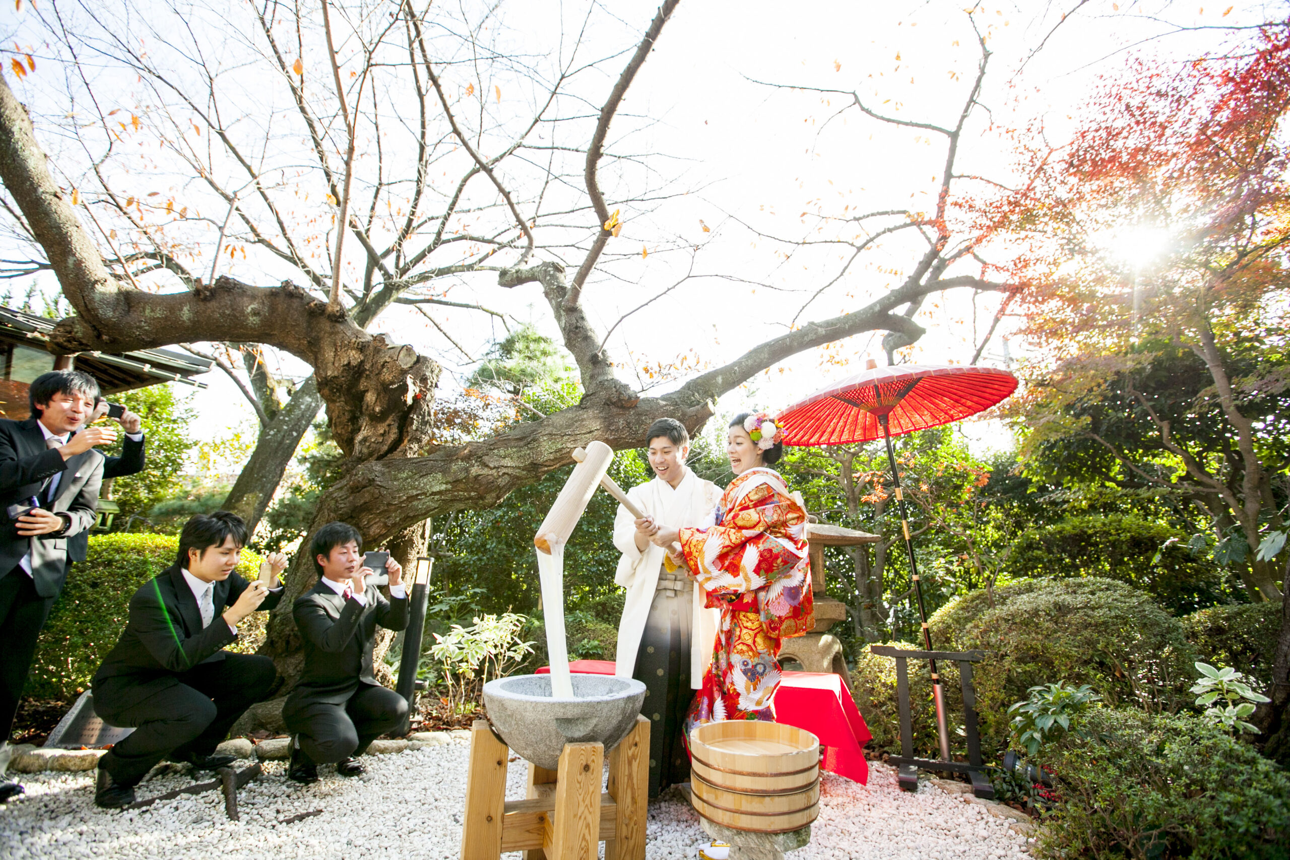 お餅つきや、ケーキ入刀の代わりにダルマの目入れ…