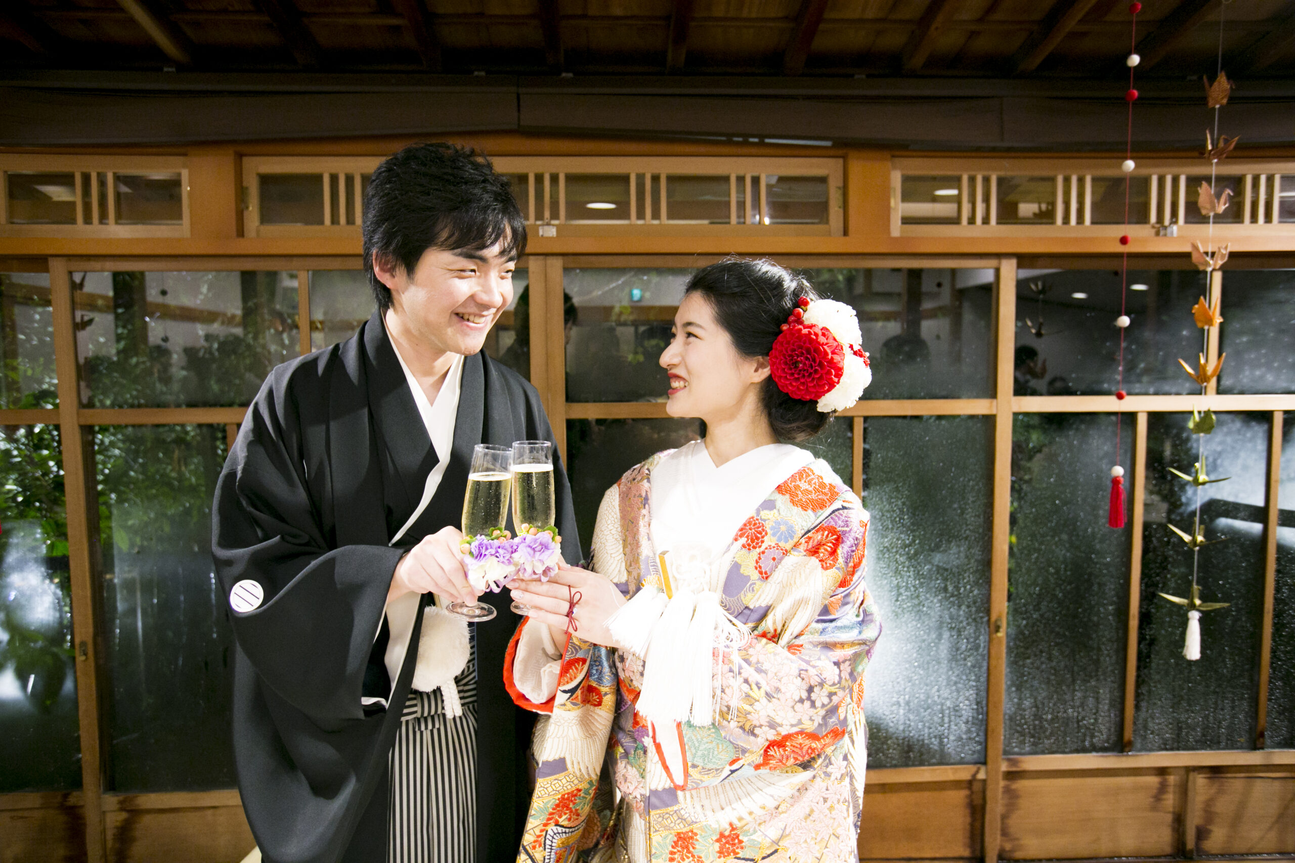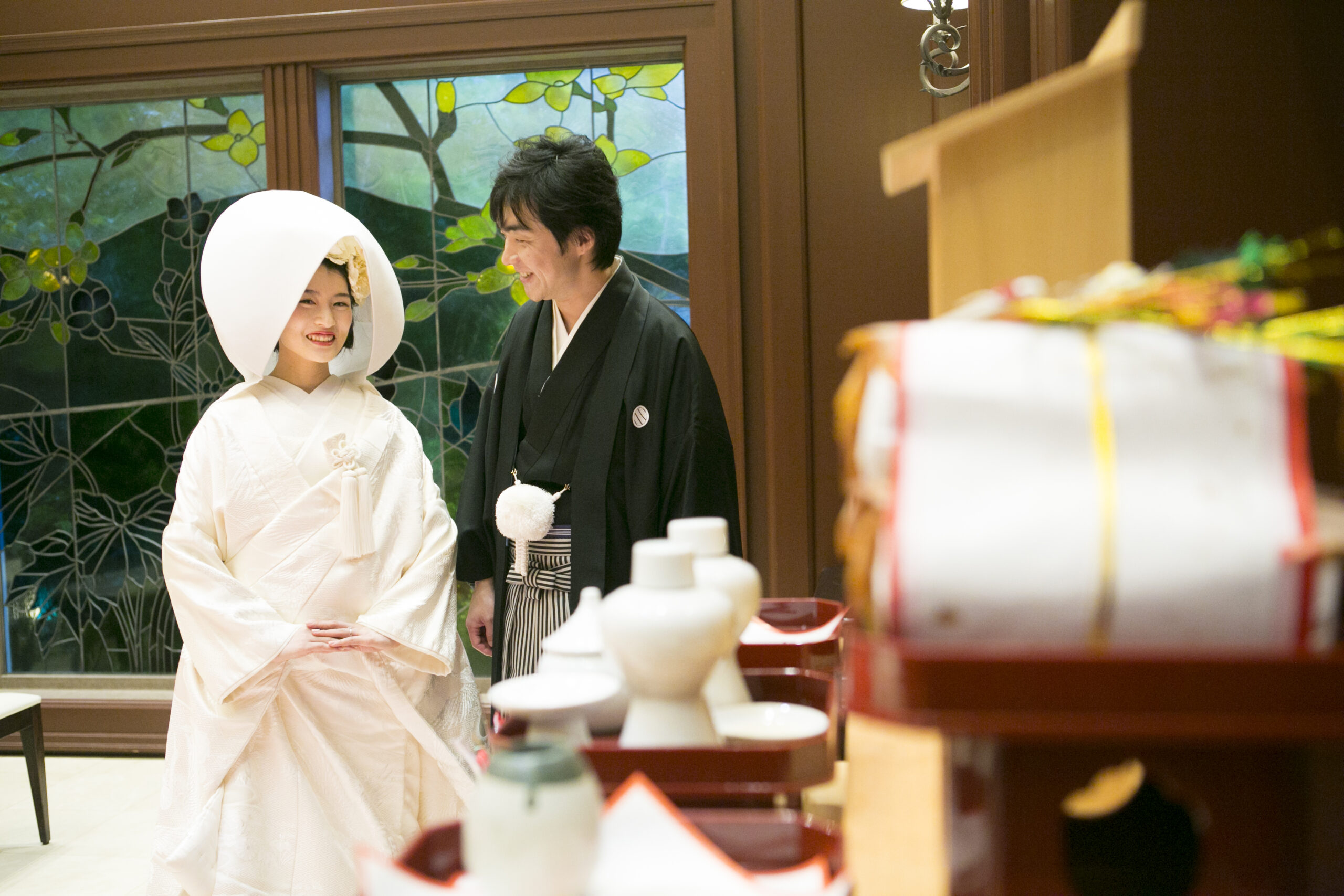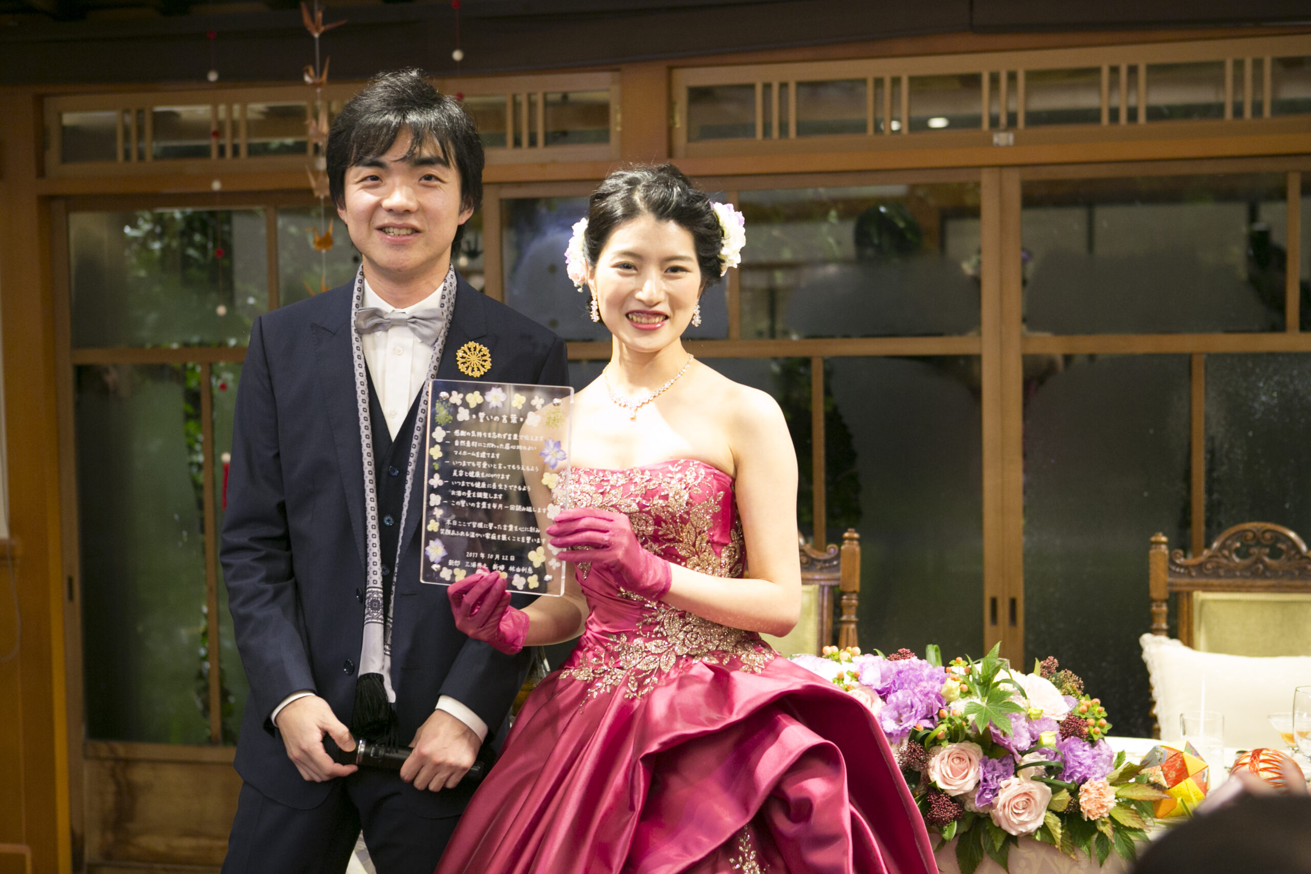 神前式では神様に愛を誓い合ったお二人ですが、