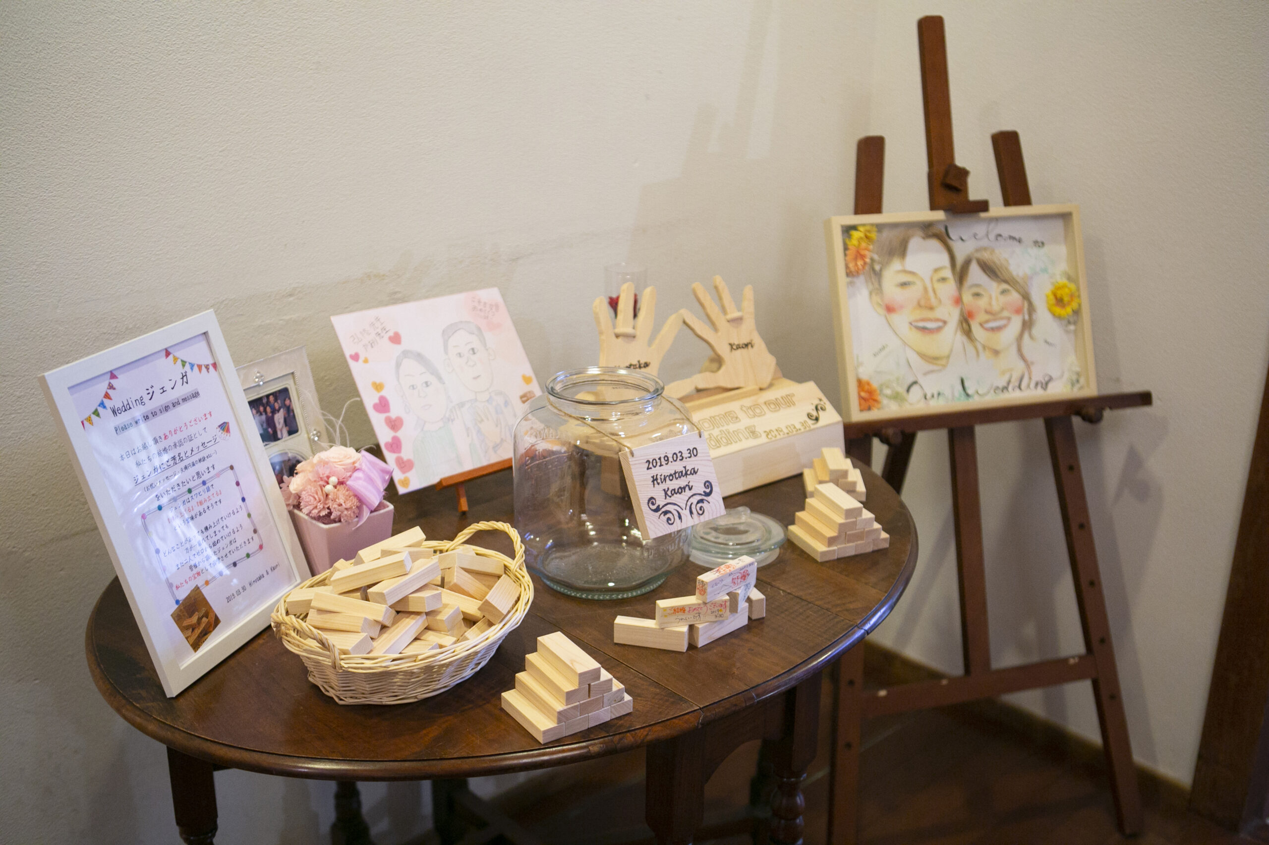 まず皆様をお迎えするのは、手作りのウェルカムアイテムたち。