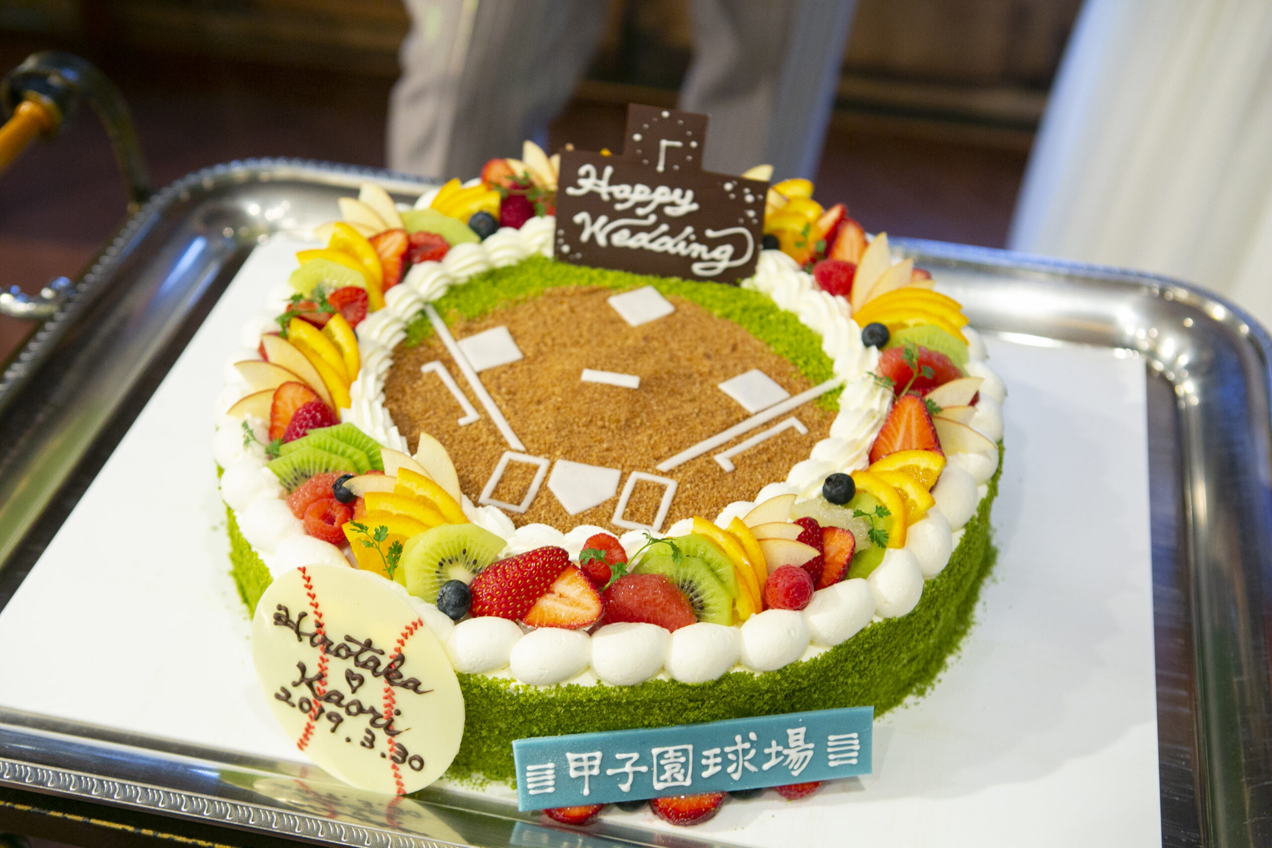 そんなお2人のウェディングケーキは甲子園球場をモチーフに。