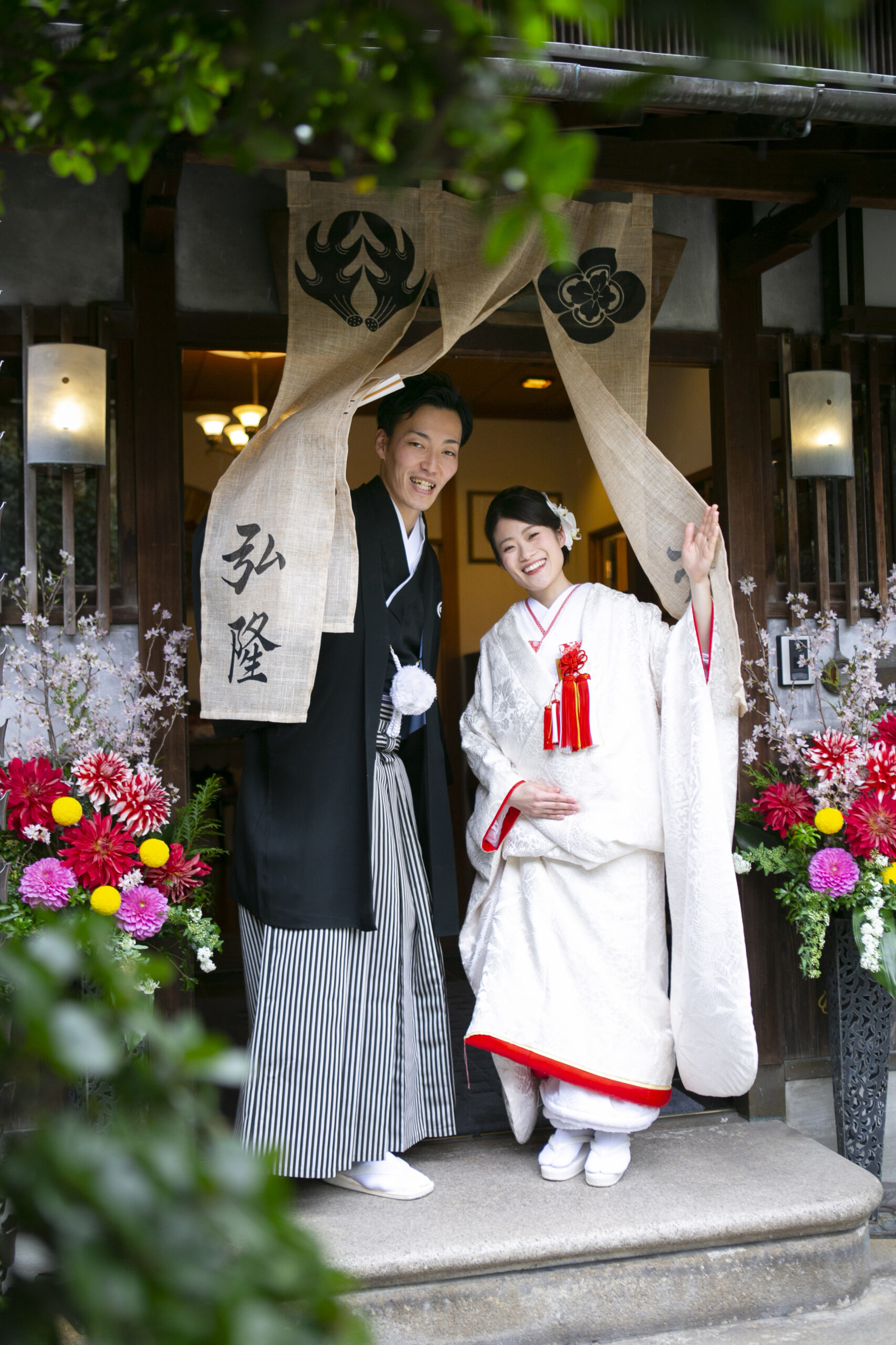 “2塁”母屋前でオリジナルの暖簾を背に素敵な笑顔をカメラでパシャリ!
