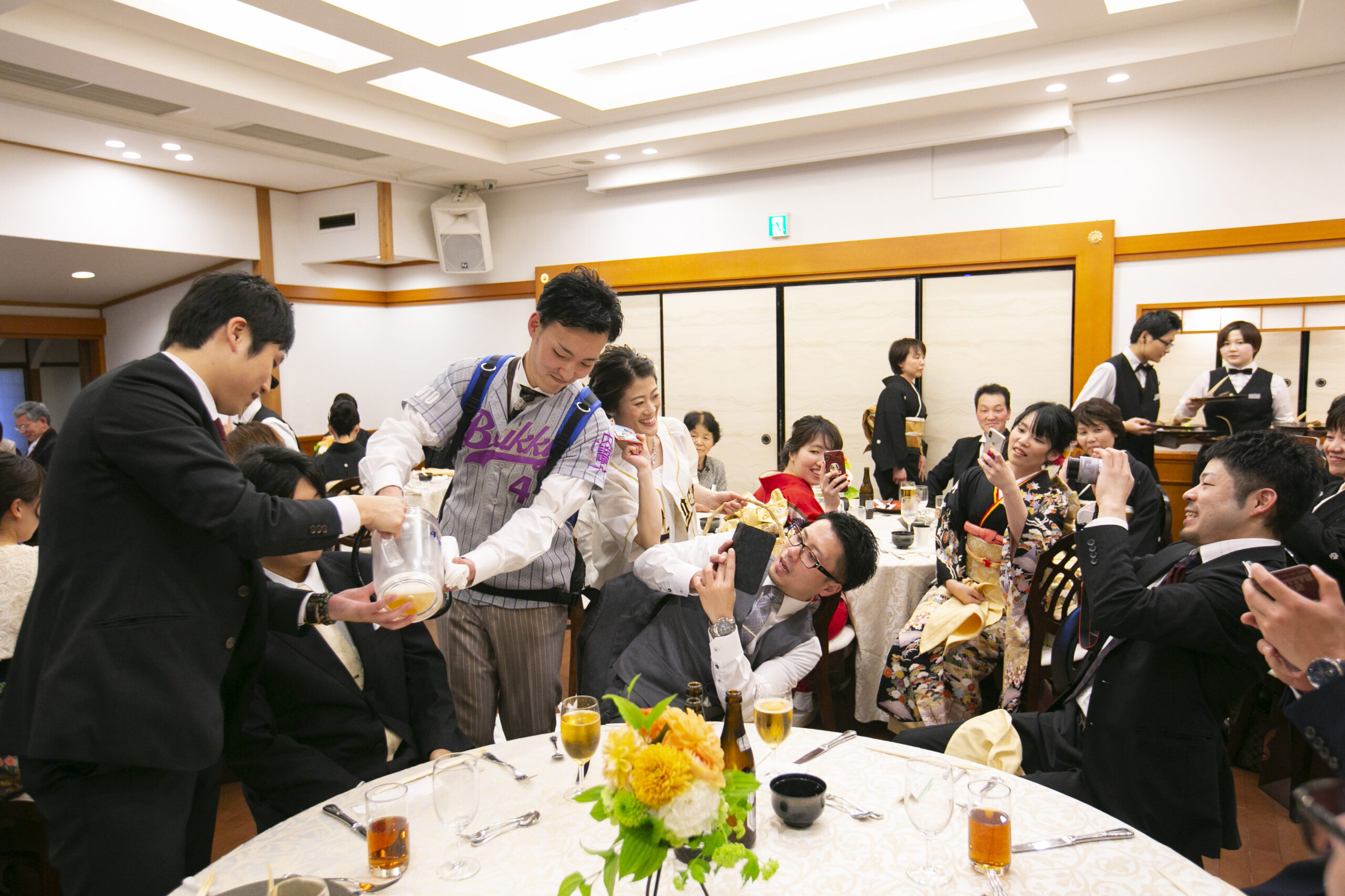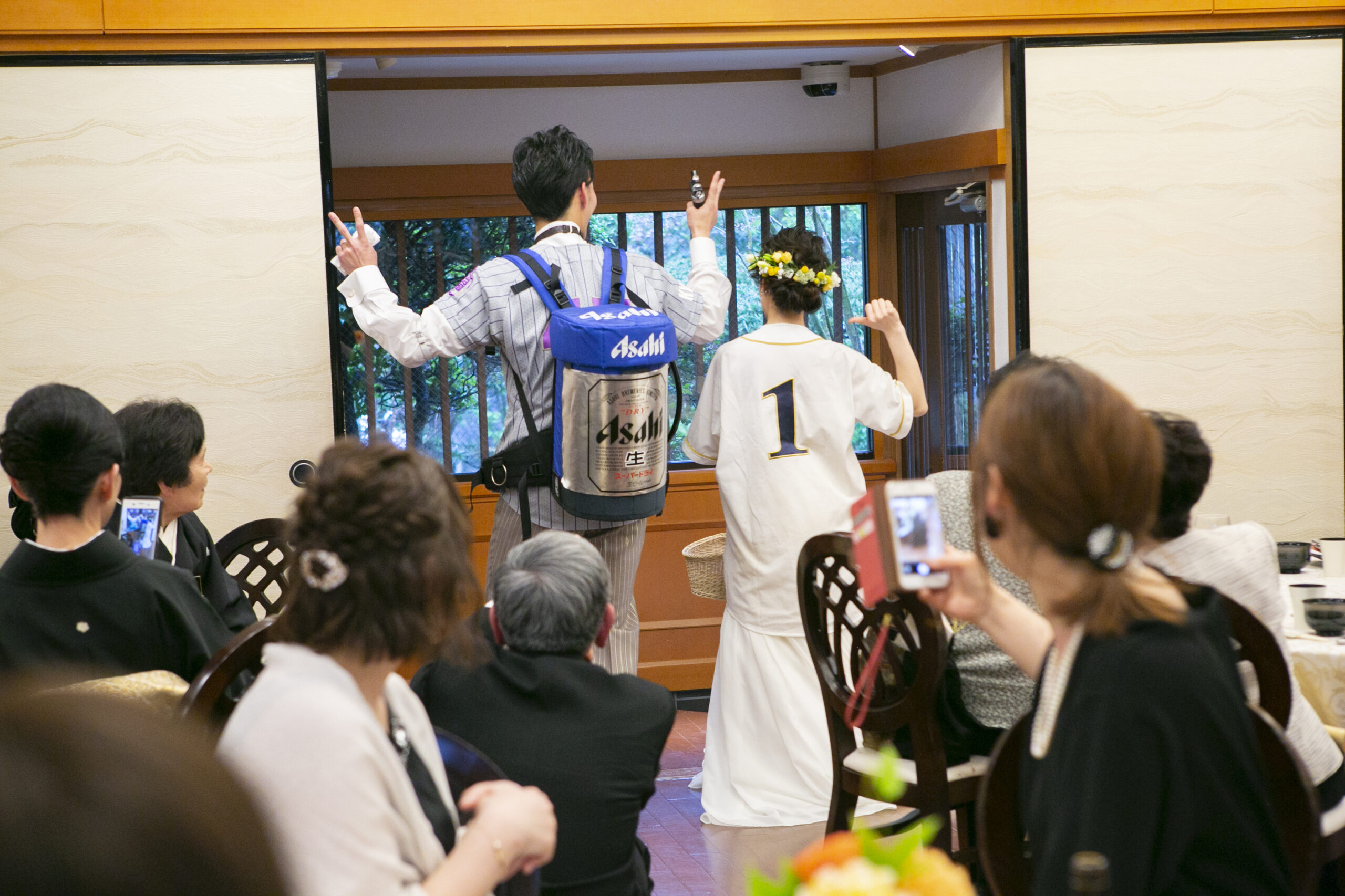 新郎様のユニフォームを着てご登場されたお2人はクルリと背番号を皆様にアピール。