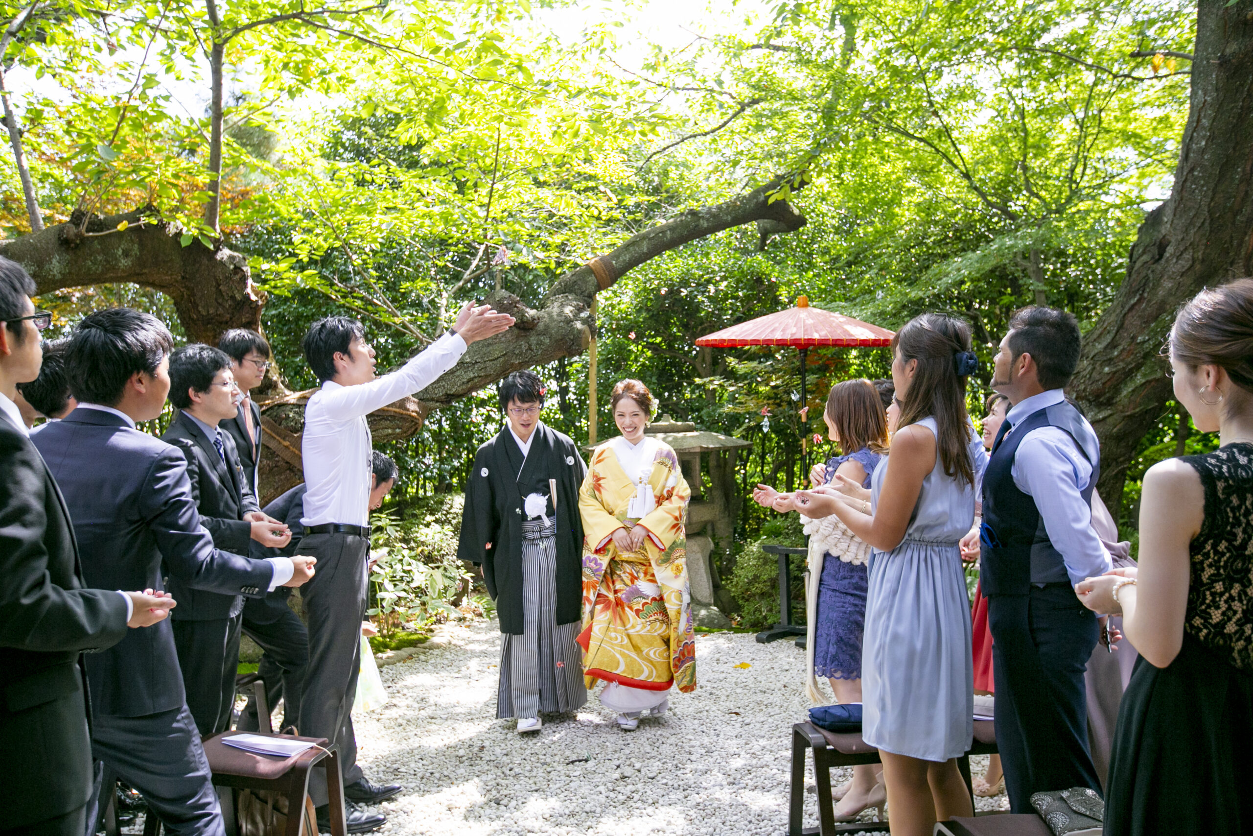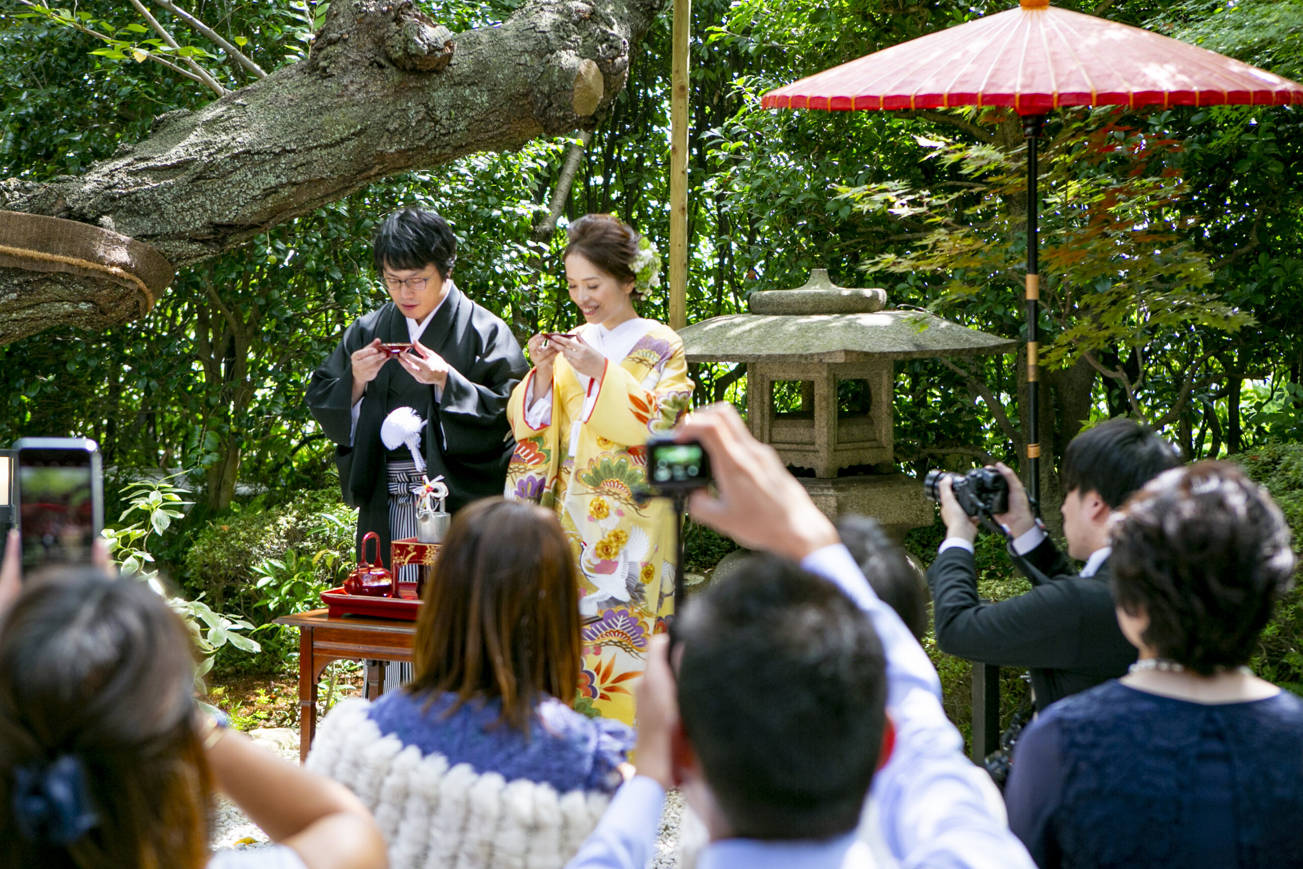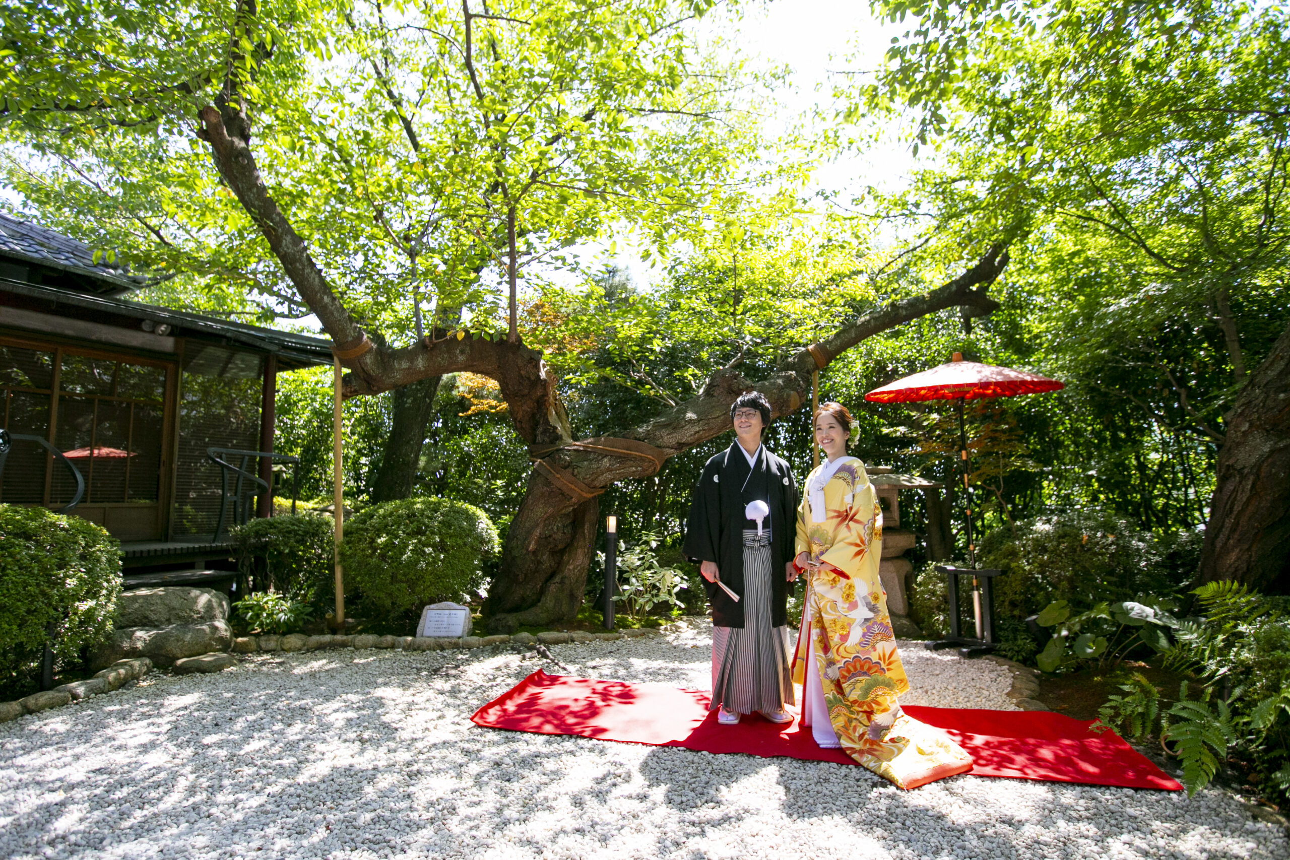 あたたかい光が差し込む和庭園、緑を通して優しくお2人を包み込んでおりました。