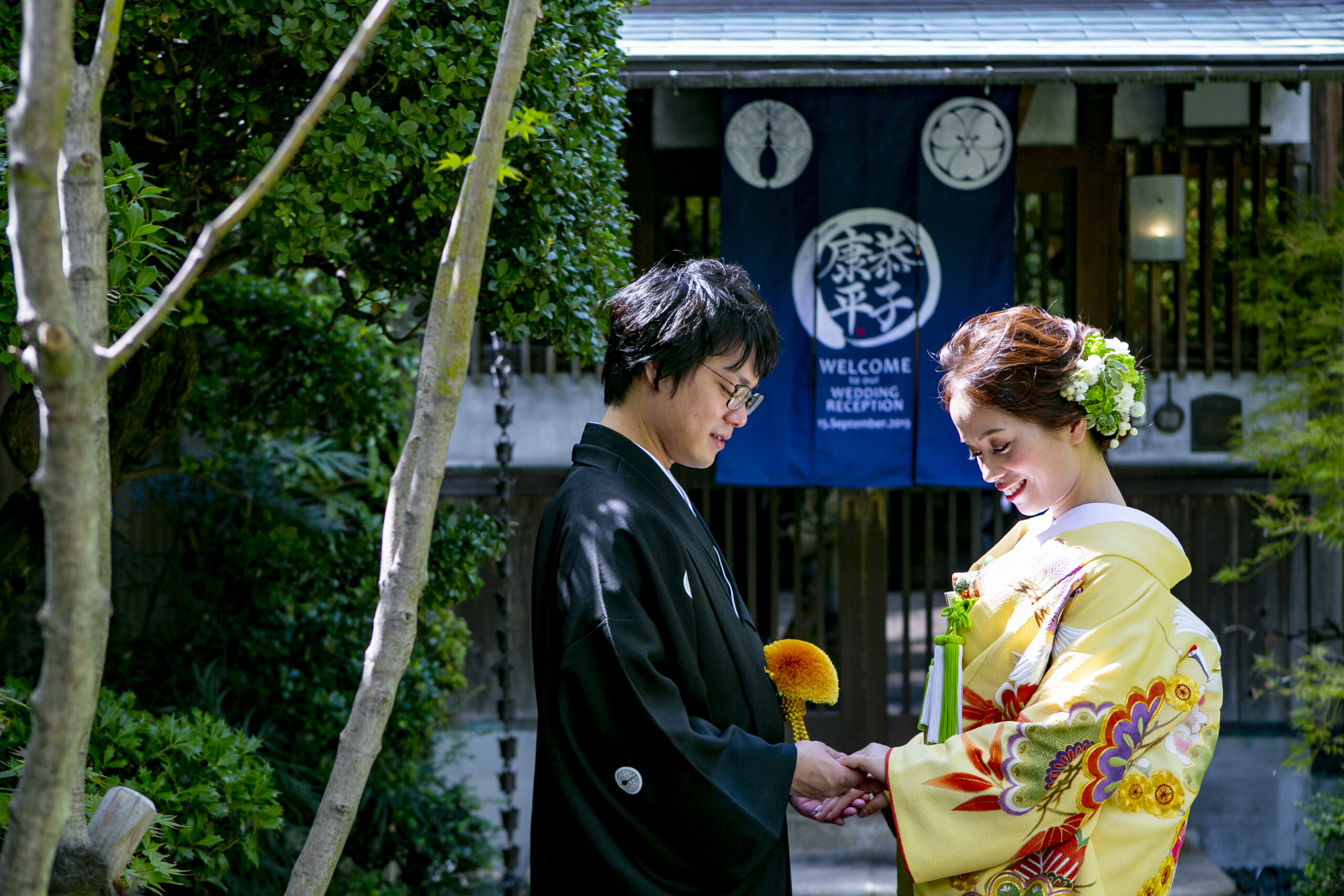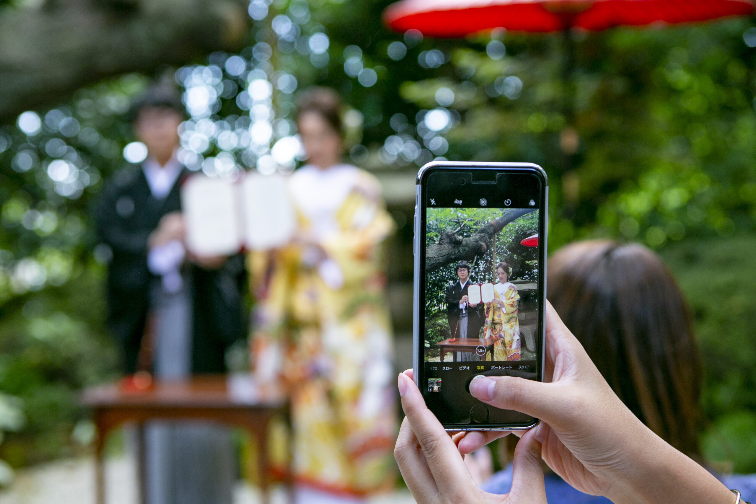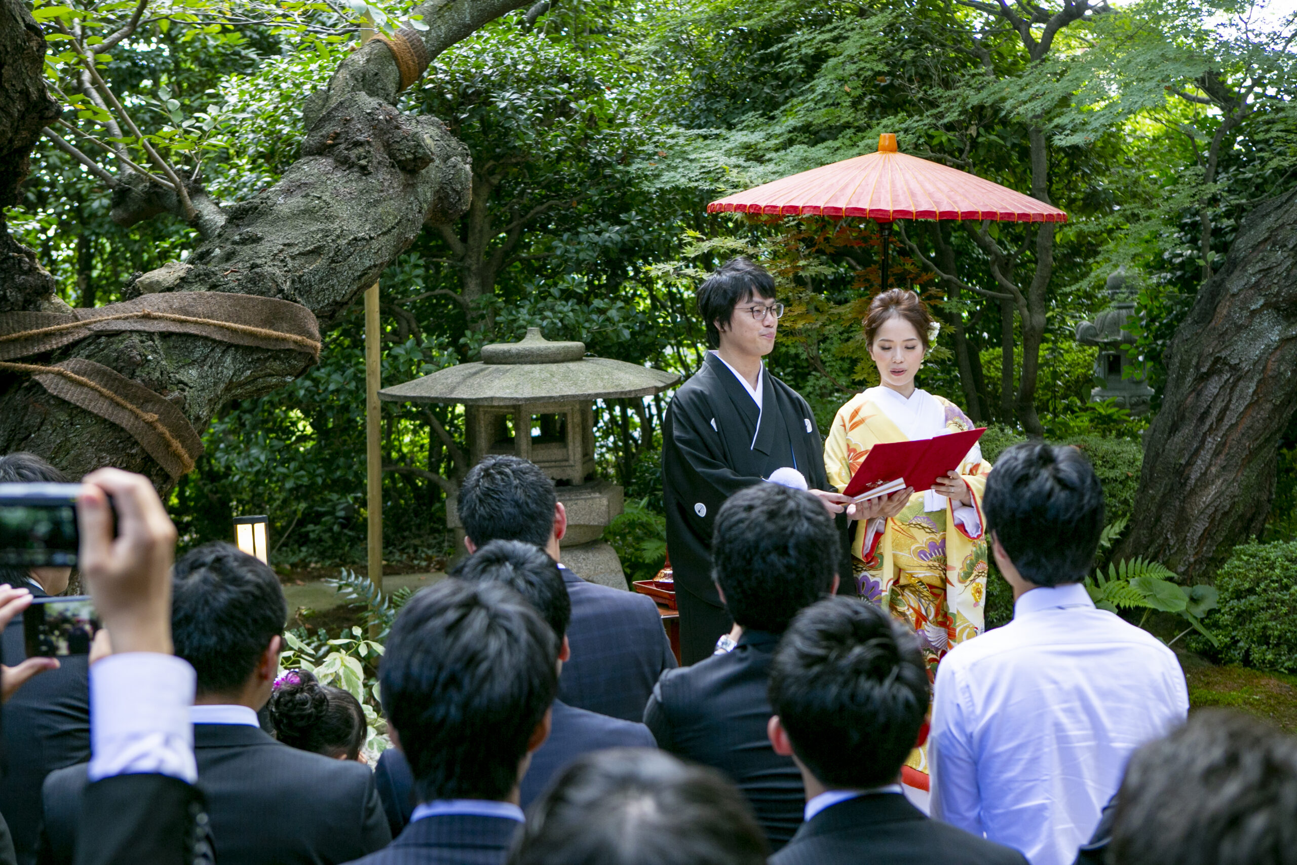 あたたかい光が差し込む和庭園、緑を通して優しくお2人を包み込んでおりました。