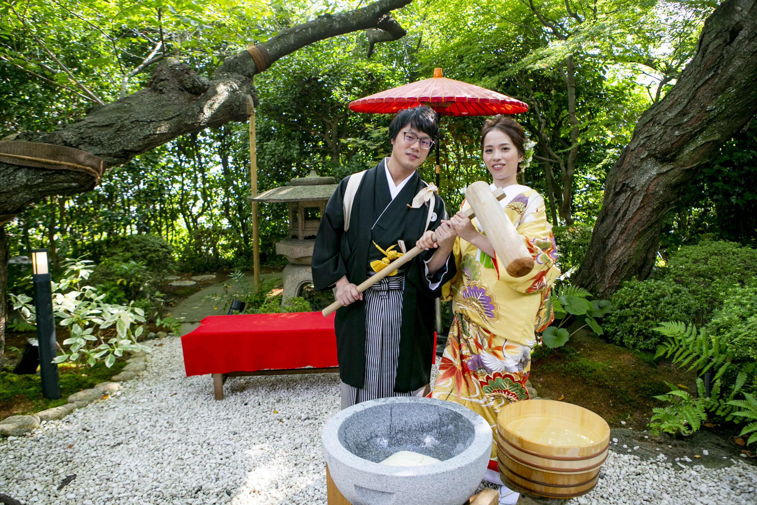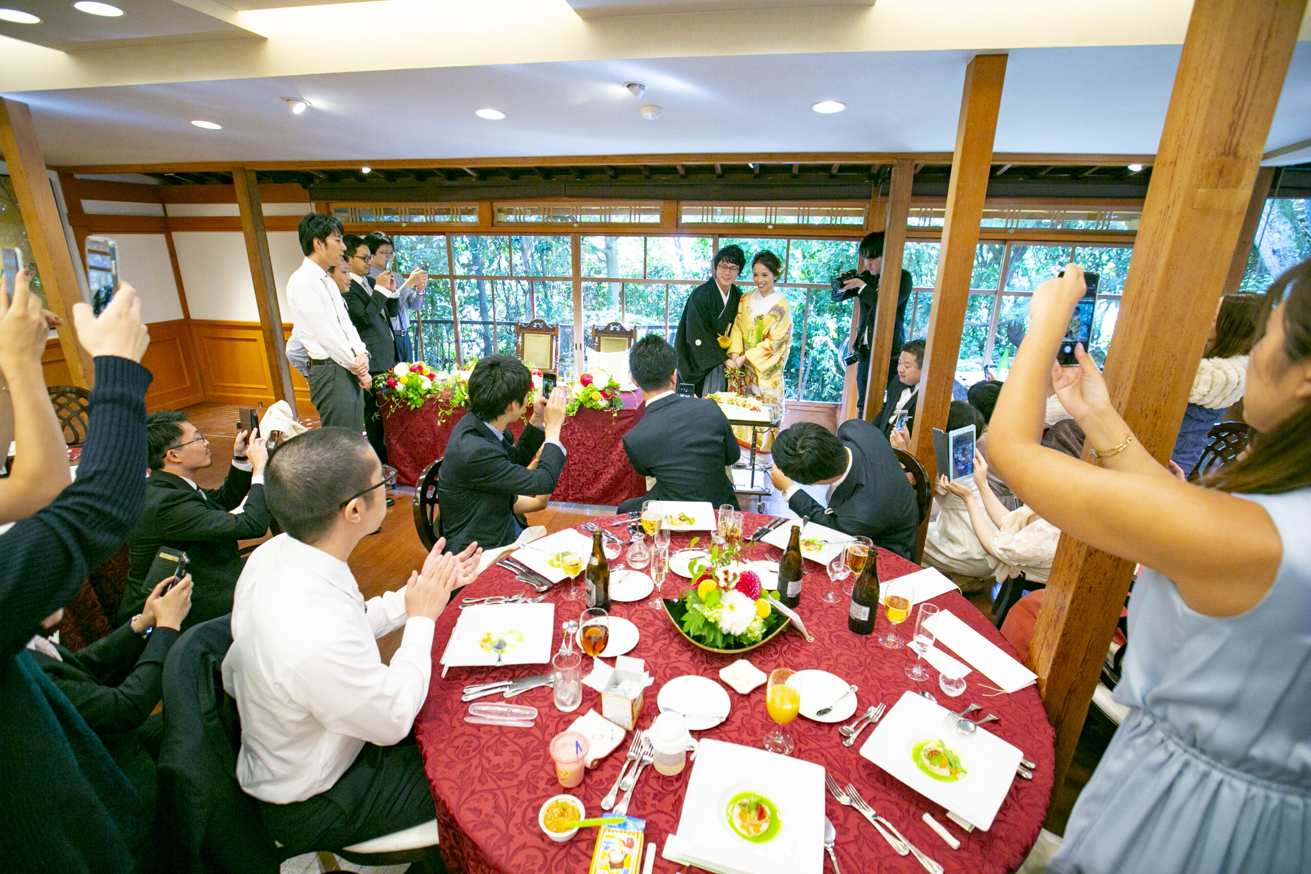 ご歓談のお楽しみ頂く中、和庭園に登場したお2人にびっくり。